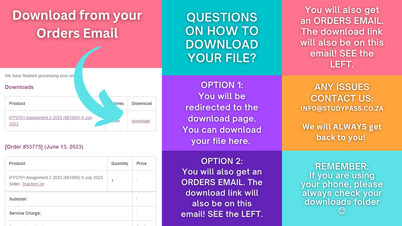 Your document will be immediately available to download once payment has been made. We are online (8am - 7pm) on our chat box for any help you need. After hours please email info@studypass.co.za. We will always get back to you!