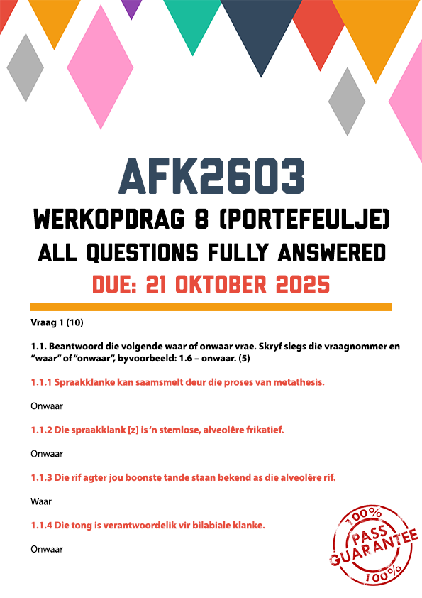 AFK2603 Werkopdrag 8 (Portefeulje) Memo | Due 21 Oktober 2025. All questions fully answered. Vraag 1 (10)
