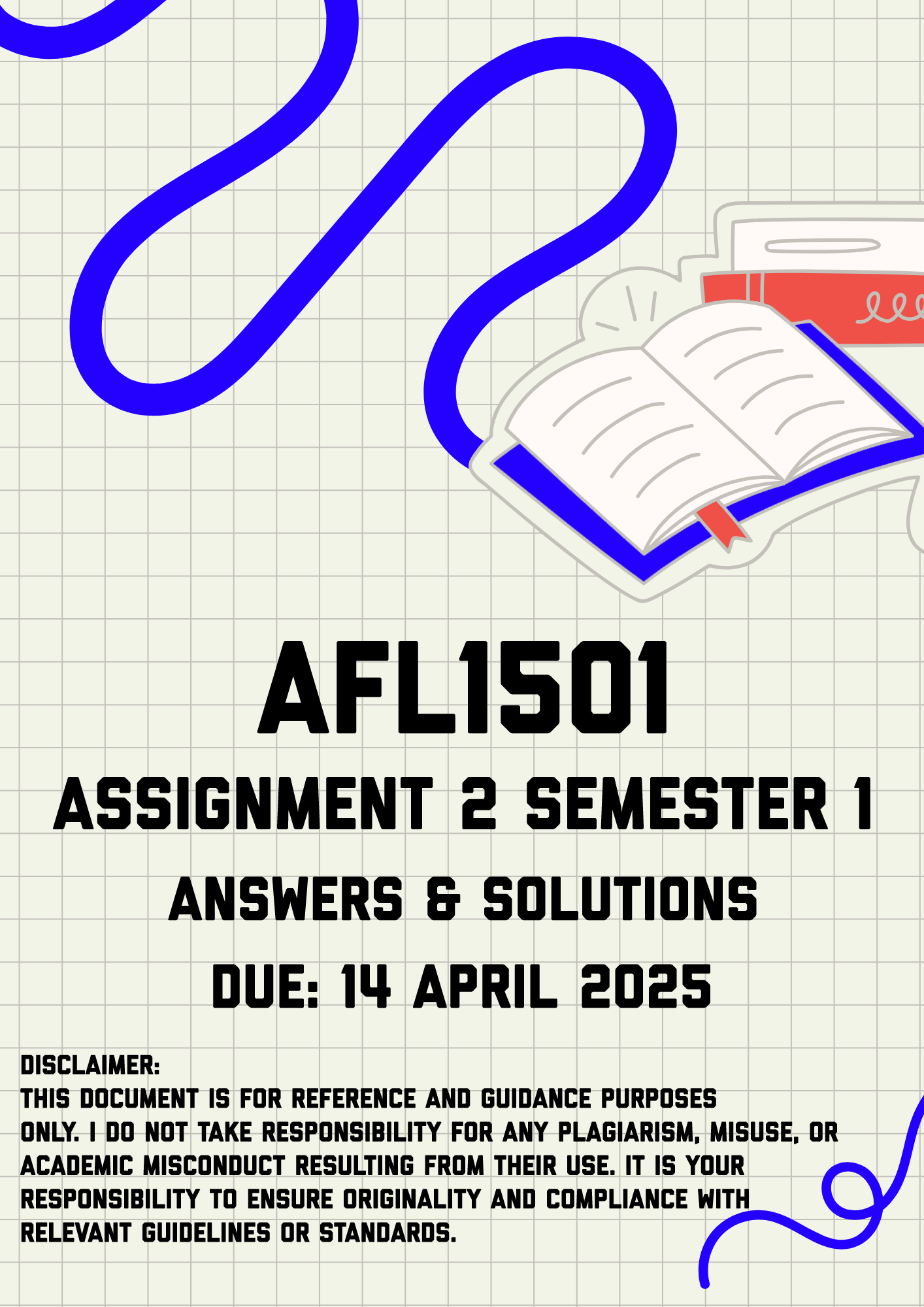 AFL1501 ASSIGNMENT 2 SEMESTER 1 MEMO 2025. DUE 14 APRIL 2025. 100% ALL QUESTIONS FULLY ANSWERED WITH 3 ESSAYS PROVIDED FOR QUESTION 3.