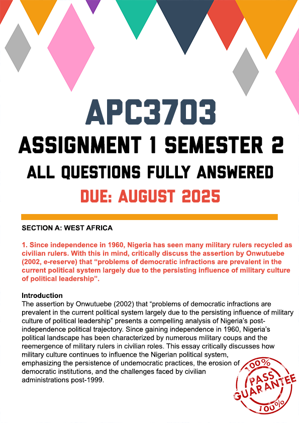 APC3703 Assignment 1 Semester 2 Memo | Due August 2025. All questions fully answered. Section A: West Africa