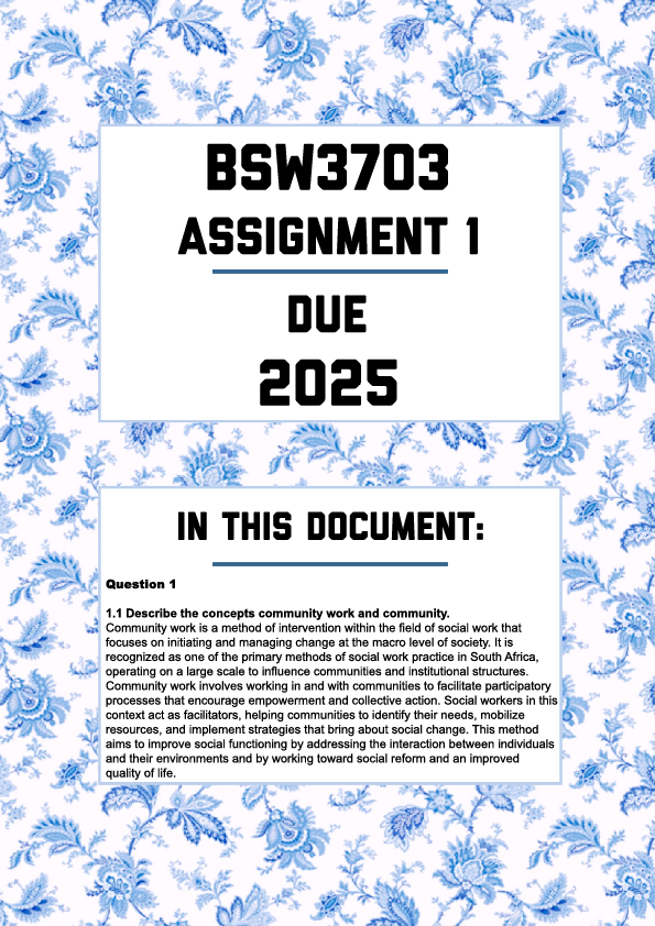 BSW3703 Assignment 1 Memo | Due 2025. All questions fully answered. Question 1