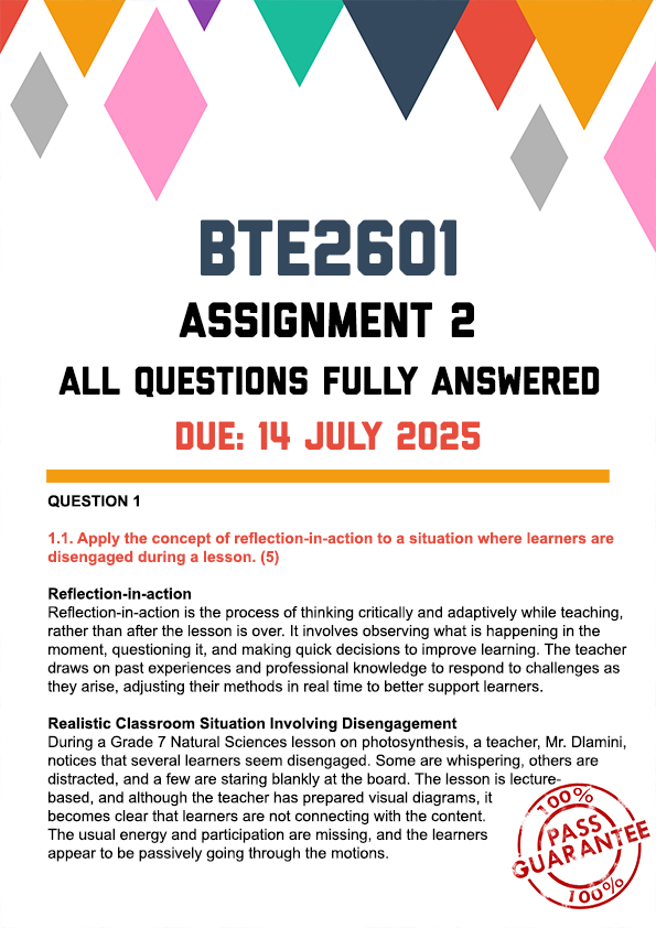 BTE2601 Assignment 2 Memo | Due 14 July 2025. This document contains a fully answered assignment with complete answers to all questions and tasks. Every section is carefully completed to ensure a guaranteed pass. Perfect for guaranteed pass, high marks, and peace of mind.