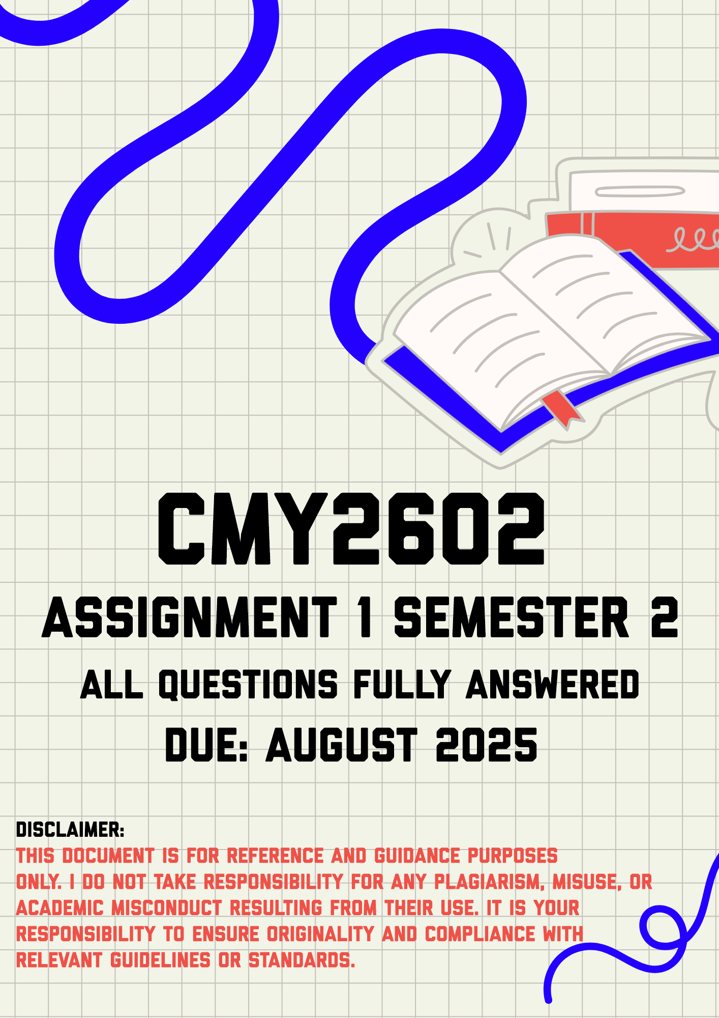 CMY2602 Assignment 1 Semester 2 Memo | Due August 2025. All questions fully answered.