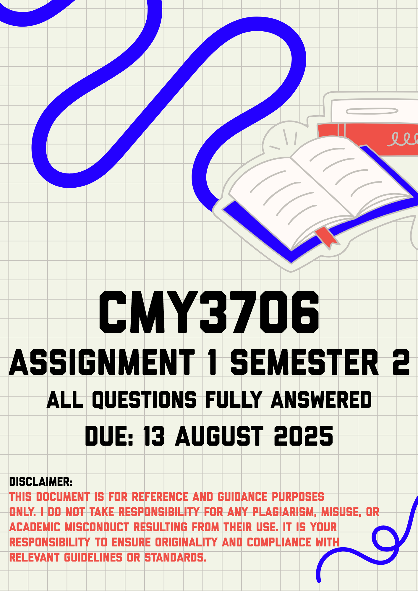 CMY3706 Assignment 1 Semester 2 Memo | Due 13 August 2025. All questions fully answered. Assignment Topic