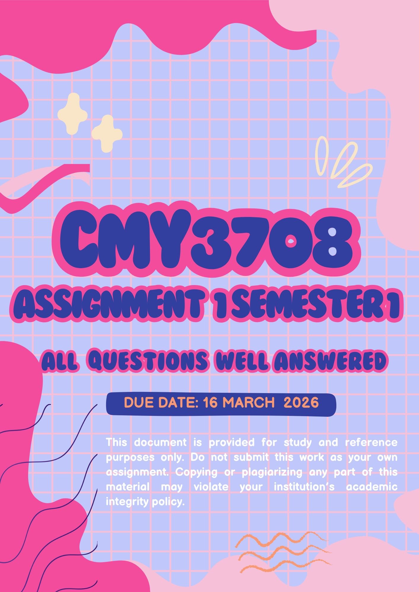 CMY3708 ASSIGNMENT ONE SEMESTER ONE 2026 (ANSWER GUIDELINES) – 16 MARCH 2026