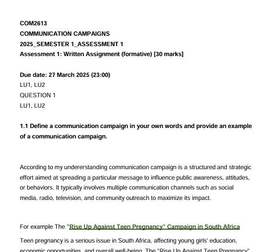 COM2613 ASSIGNMENT 1 SEMESTER 1 2025 | COMMUNICATION CAMPAIGNS | 27 MARCH 2025