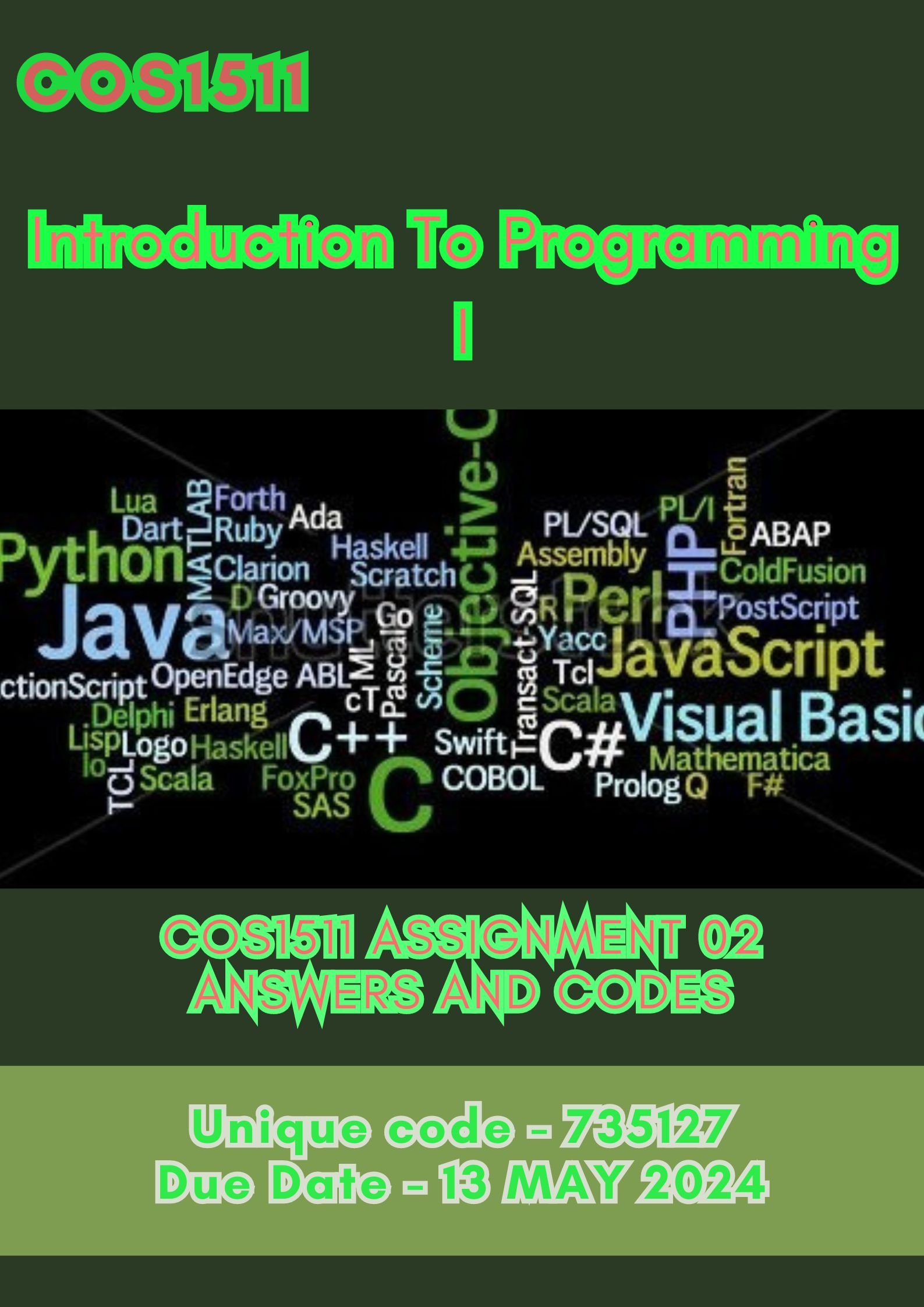 COS1511 Assignment 2 2024 (735127) 13 May 2024 {Complete Answers and Codes provided for Questions 1 to 7}