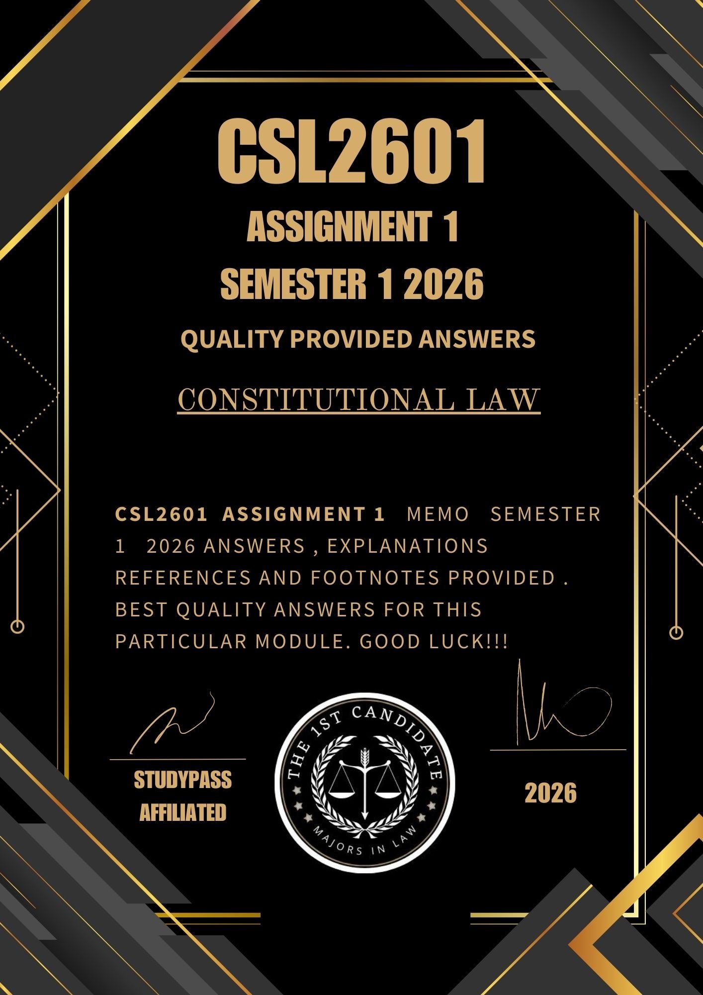 CSL2601 ASSIGNMENT 1 SEMESTER 1 2026 _ DUE DATE MARCH 2026 /100% TRUSTED ANSWERS, REFERENCES AND EXPLANATIONS/
