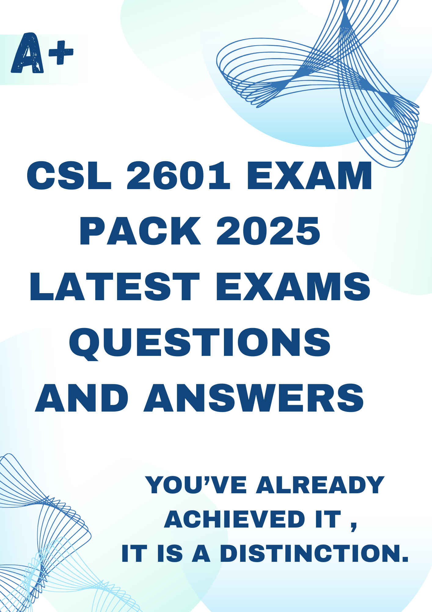 CSL2601 EXAM PACK 2025 UPDATED QUESTIONS AND ANSWERS.RECENT WITH MANY MORE QUESTIONS TO STUDY ,WELL EXPLAINED ANSWERS.