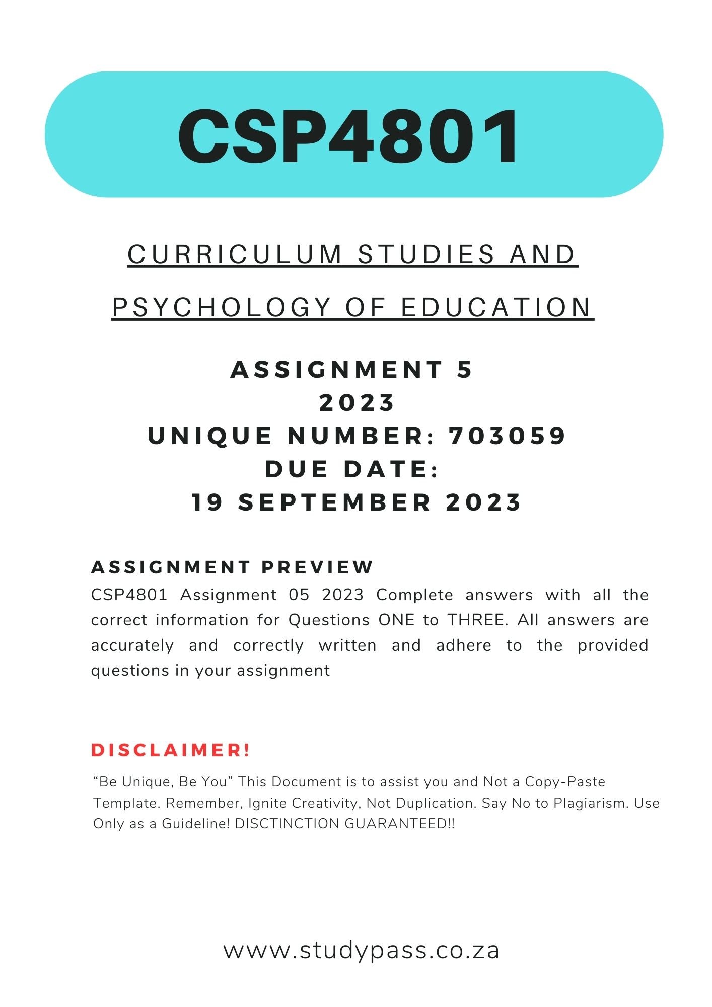 CSP4801 Assignment 5 2023 Unique Number: 703059 Due Date: 19 September 2023 (COMPLETE ANSWERS).Β Β All answers are to be used as guidelines only. Distinction Guaranteed