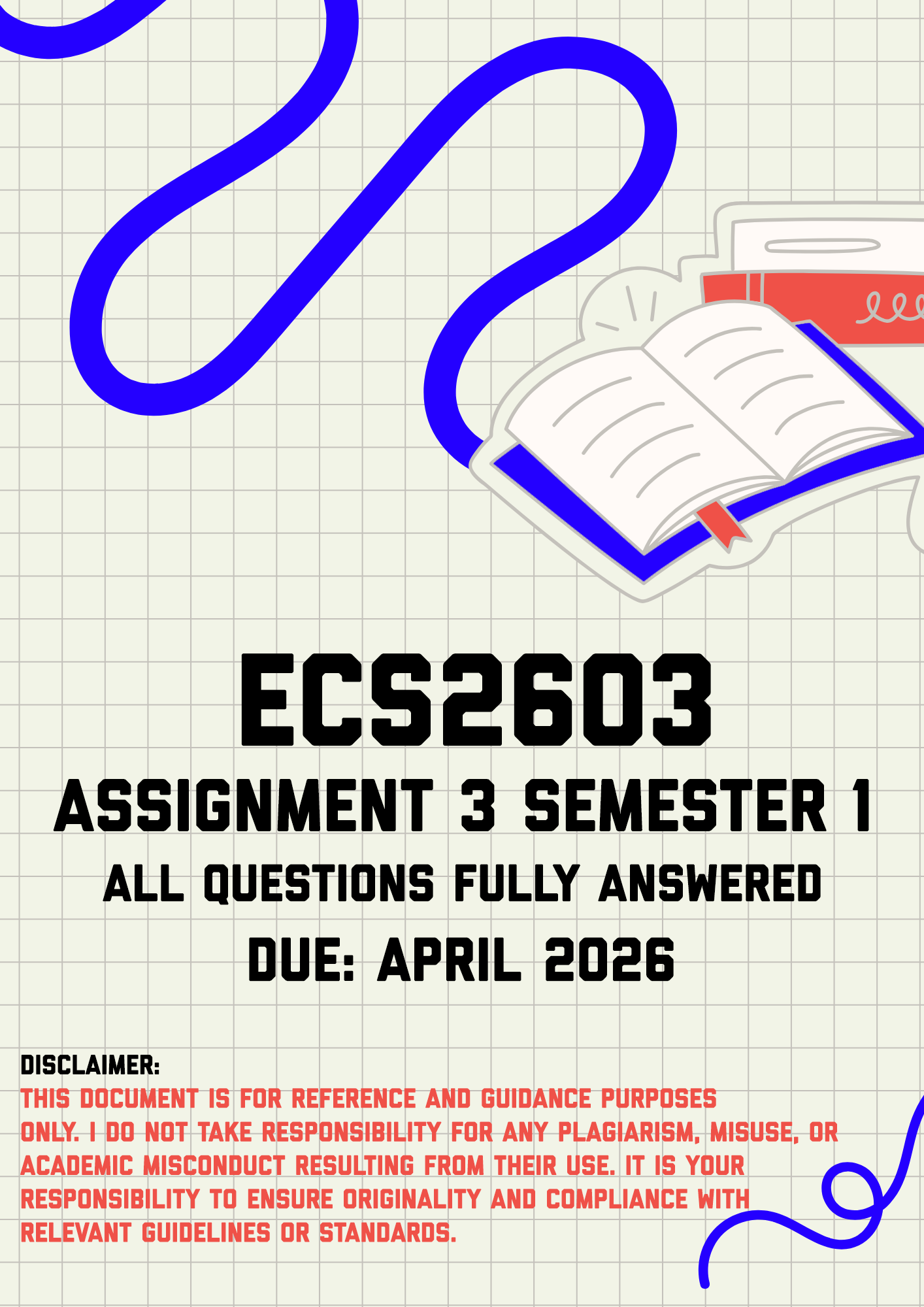 ECS2603 Assignment 3 Semester 1 Memo | Due April 2026. All questions fully answered. Question 1