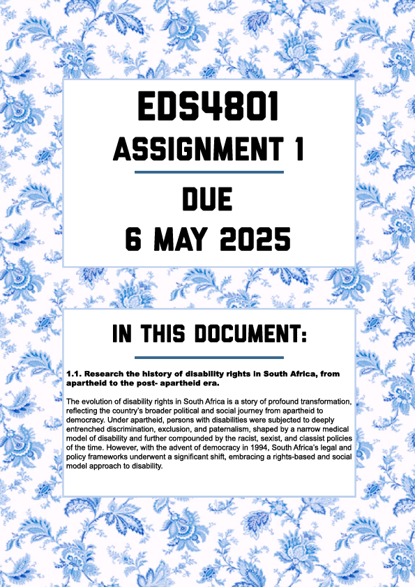 Assignment 1: Historical and Legal Framework of Disability Rights in South Africa.