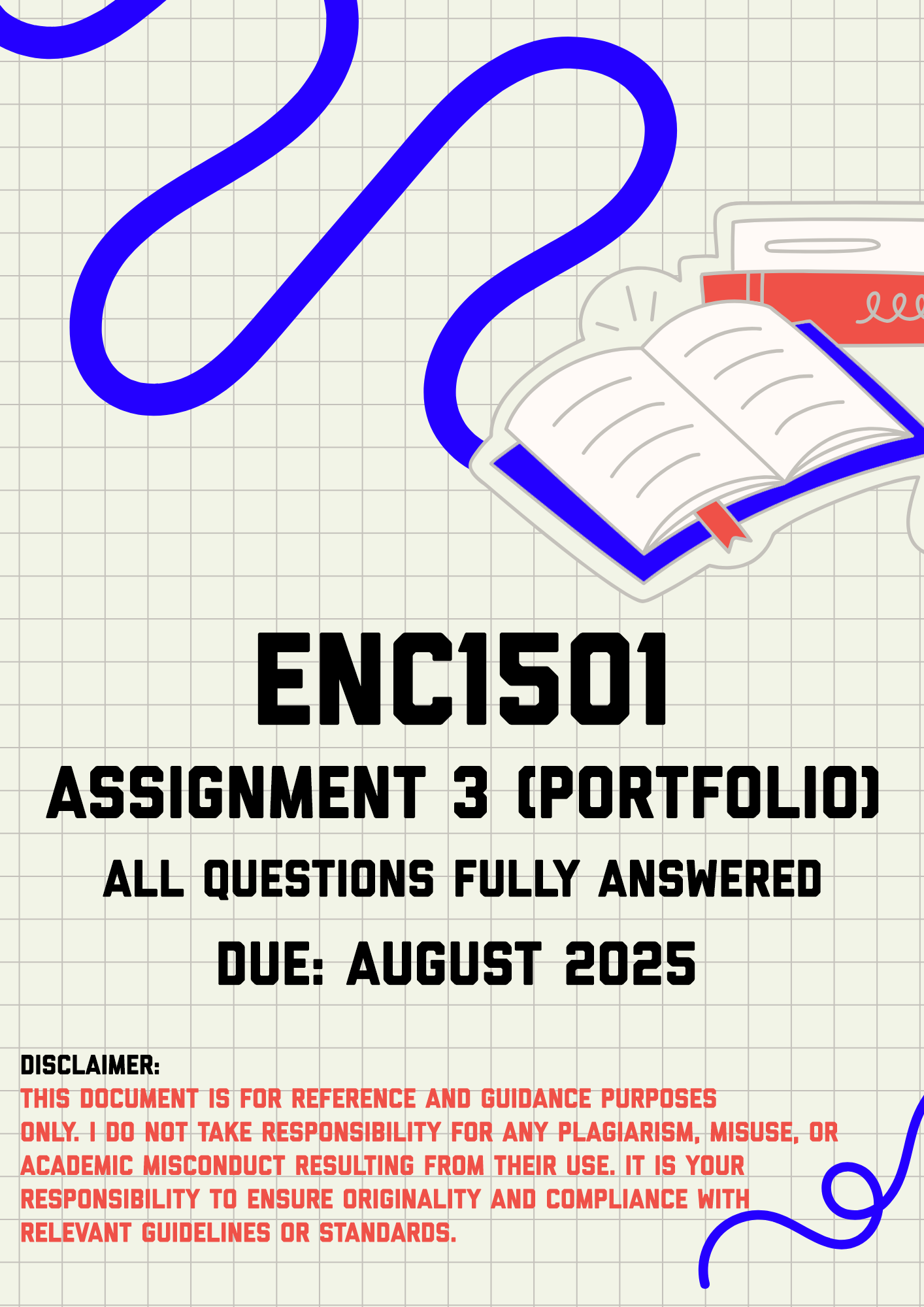 ENC1501 Assignment 3 (Portfolio) Memo | Due August 2025. All questions fully answered.