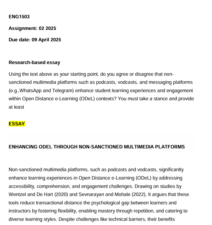 ENG1503 Assignment 2 | Due date: 9th April 2025