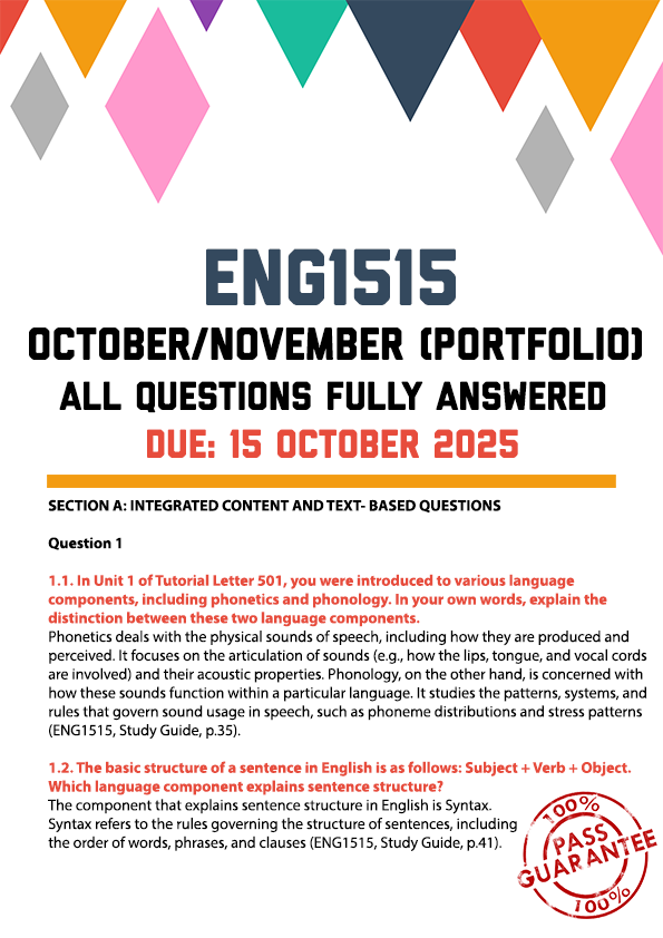 ENG1515 October/November (Portfolio) Memo | Due 15 October 2025. TWO ESSAYS PROVIDED. SECTION A: INTEGRATED CONTENT AND TEXT- BASED QUESTIONS