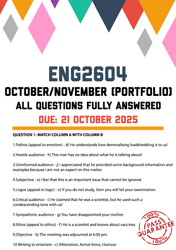 ENG2604 October/November (Portfolio) Memo | Due 21 October 2025. All questions fully answered. Question 1