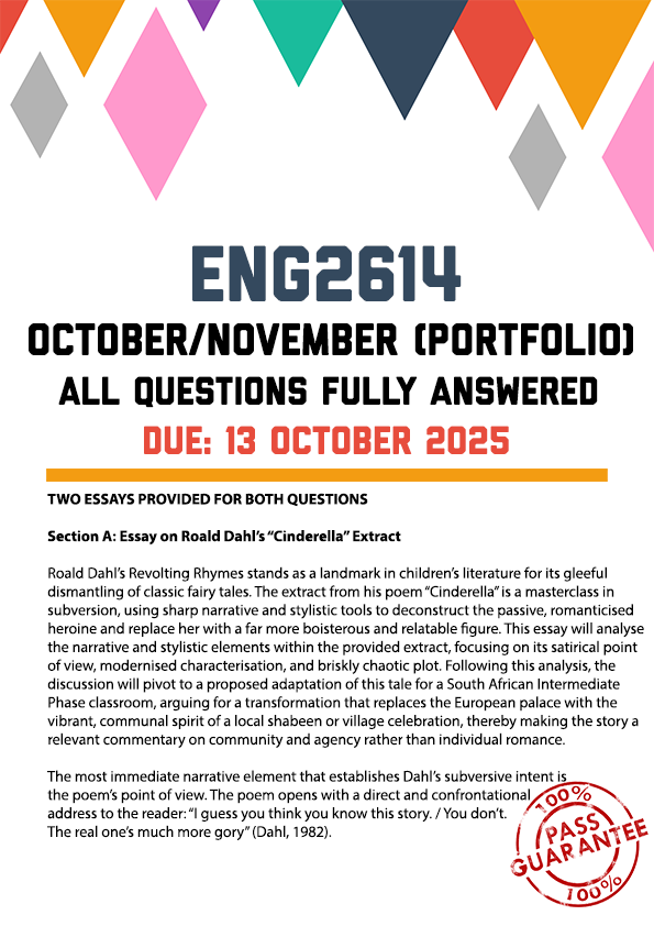 ENG2614 October/November (Portfolio) Memo | Due 13 October 2025. TWO ESSAYS PROVIDED FOR BOTH QUESTIONS.