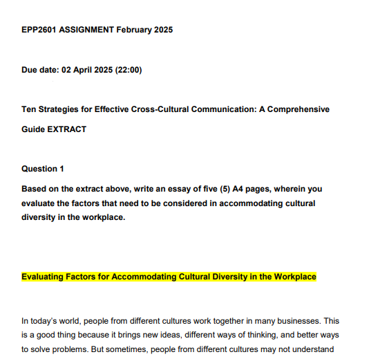 Based on the extract above, write an essay of five (5) A4 pages, wherein you evaluate the factors that need to be considered in accommodating cultural diversity in the workplace.