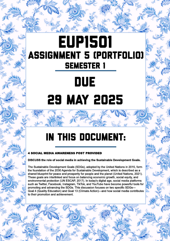 EUP1501 Assignment 5 (Portfolio) Semester 1 Memo | Due 29 May 2025.