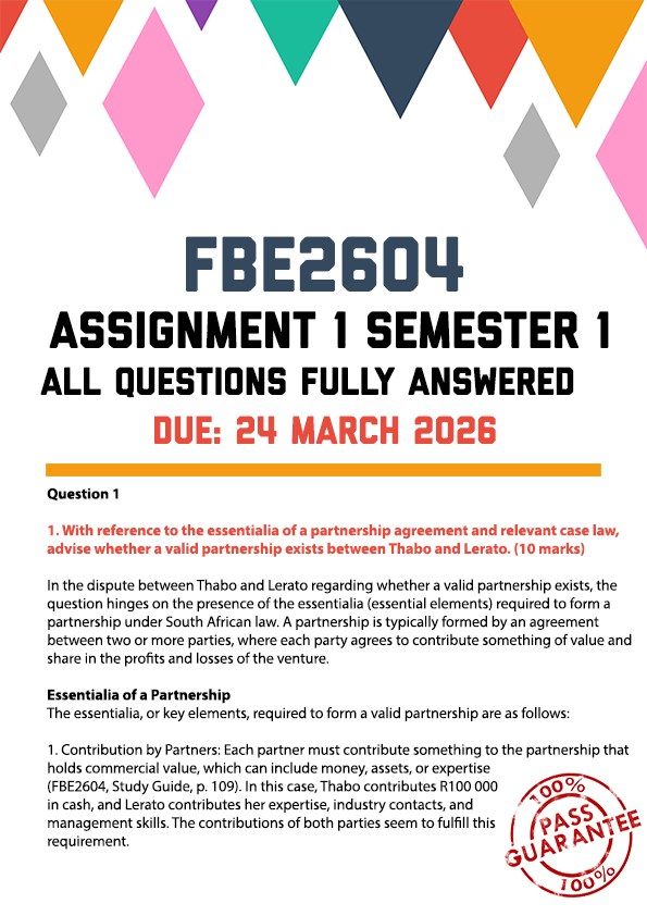 FBE2604 Assignment 1 Semester 1 Memo | Due 24 March 2026 . All questions fully answered. Question 1
