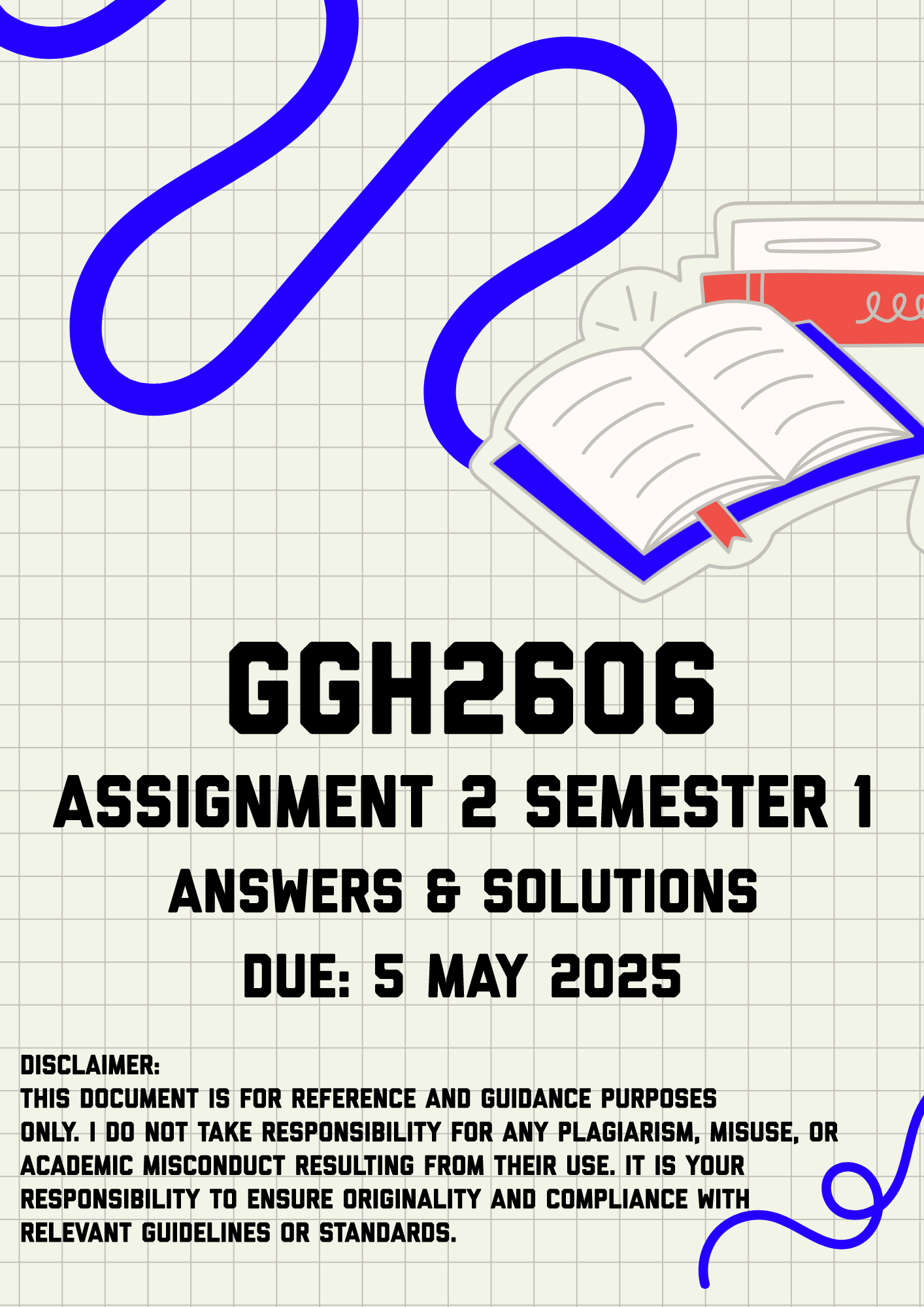 GGH2606 Assignment 2 Semester 1 Memo | Due 5 May 2025. THREE AREAS PROVIDED. Report: Sustainability analysis of your chosen tourism area. Instructions