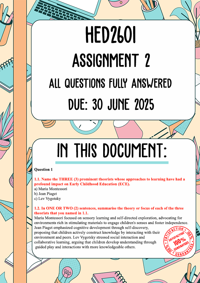 HED2601 Assignment 2 Memo | Due 30 June 2025. All questions answered.