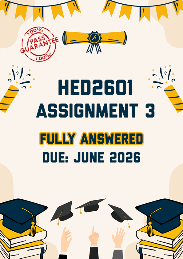 HED2601 Assignment 3 Memo | Due June 2026. All questions fully answered. QUESTION 1 (22)