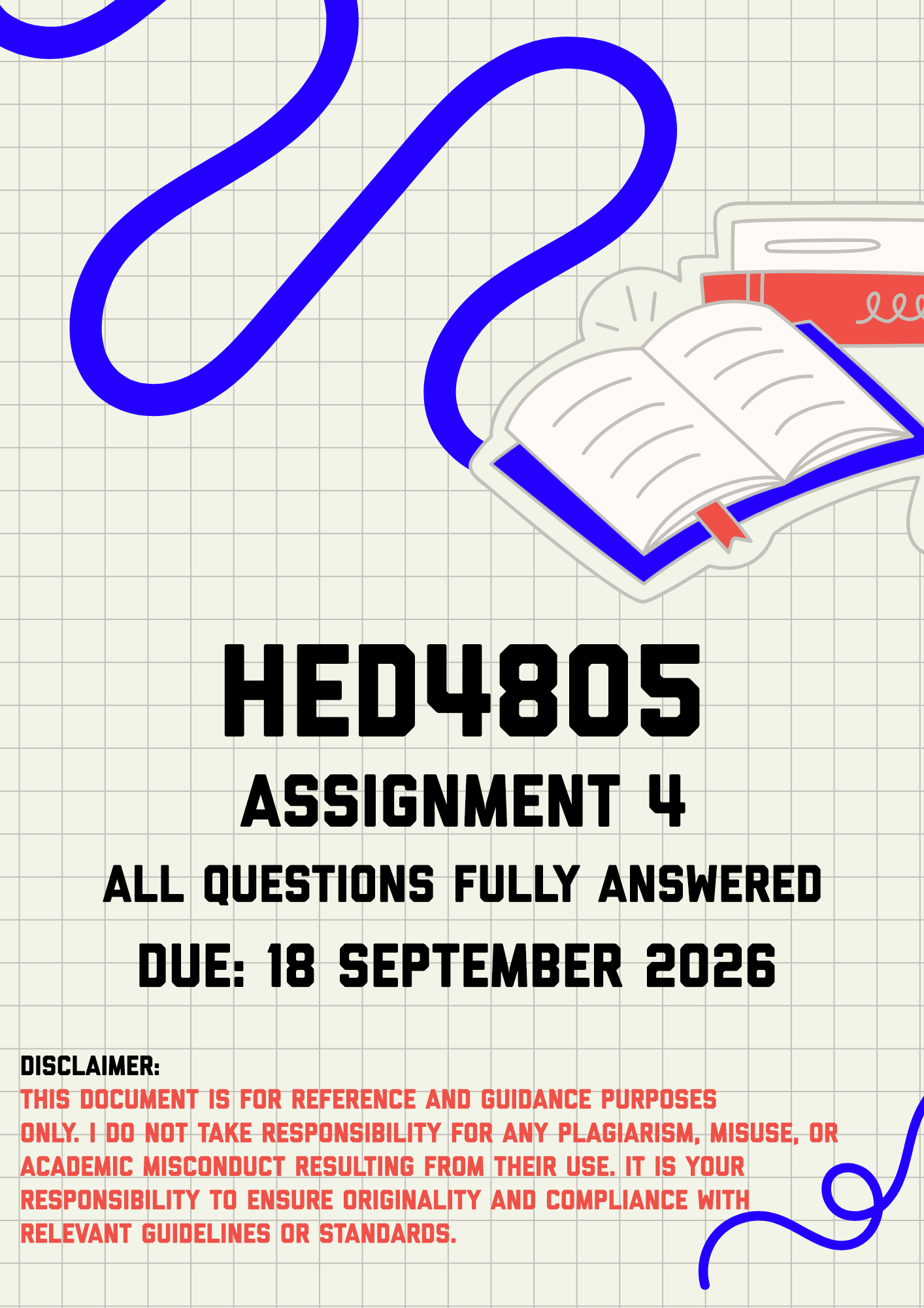 HED4805 Assignment 4 Memo | Due 18 September 2026. All questions fully answered. Question 1