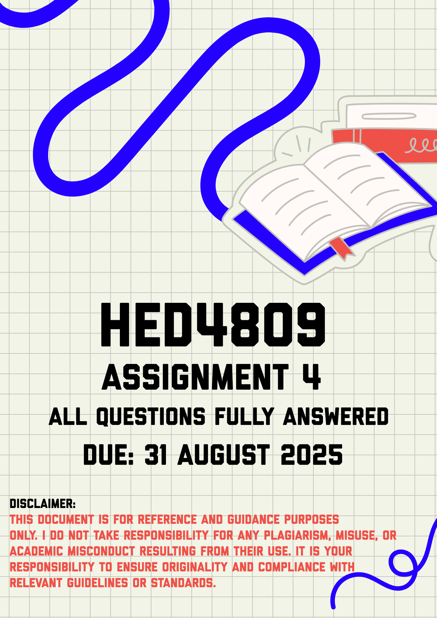 HED4809 Assignment 4 Memo | Due 31 August 2025. All questions fully answered.  QUESTION 1