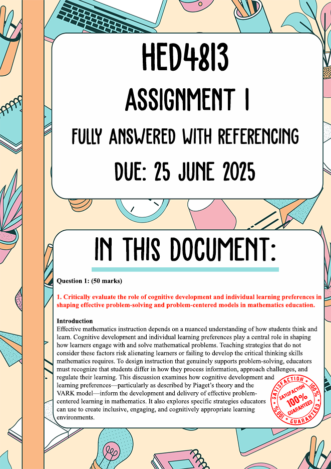 HED4813 Assignment 1 Memo | Due 25 June 2025. This document contains a fully answered assignment with complete answers to all questions and tasks. Every section is carefully completed to ensure a guaranteed pass. Perfect for guaranteed pass, high marks, and peace of mind.