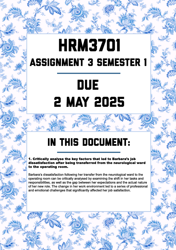 3 reviews for HRM3701 ASSIGNMENT 3 SEMESTER 1 2025 – FULLY ANSWERED (DUE 2 MAY 2025)