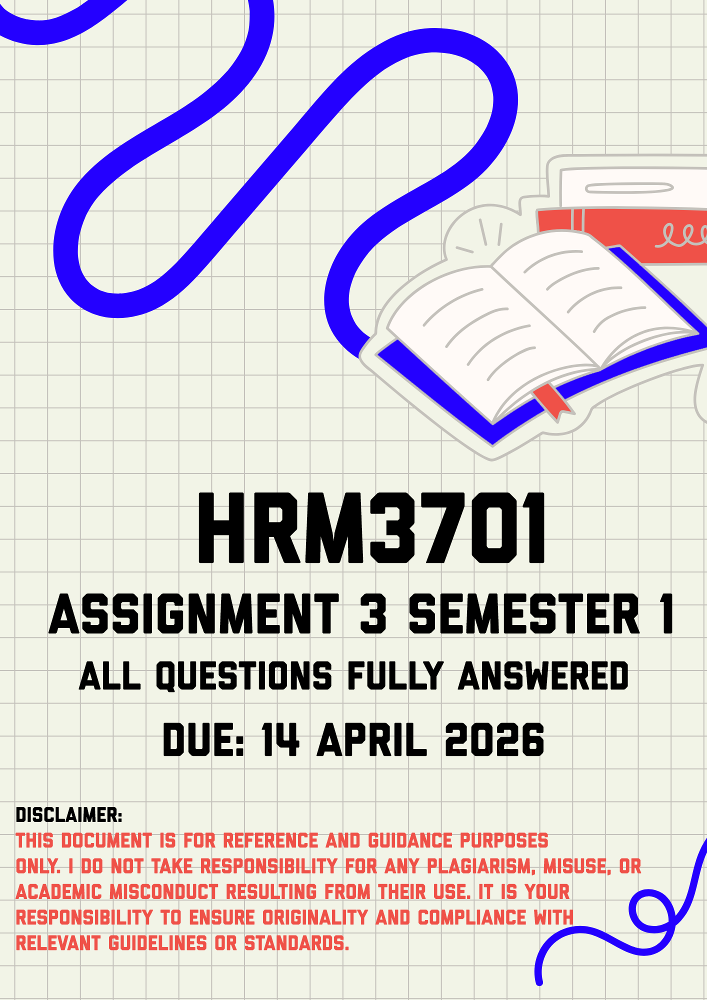HRM3701 Assignment 3 Semester 1 Memo | Due 14 April 2026. All questions fully answered . Question 1 (20)