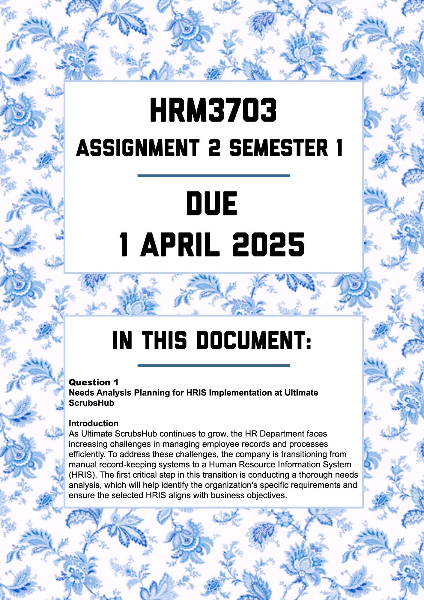 HRM3703 Assignment 2 Semester 1 | Due 1 April 2025. All questions answered. Question 1