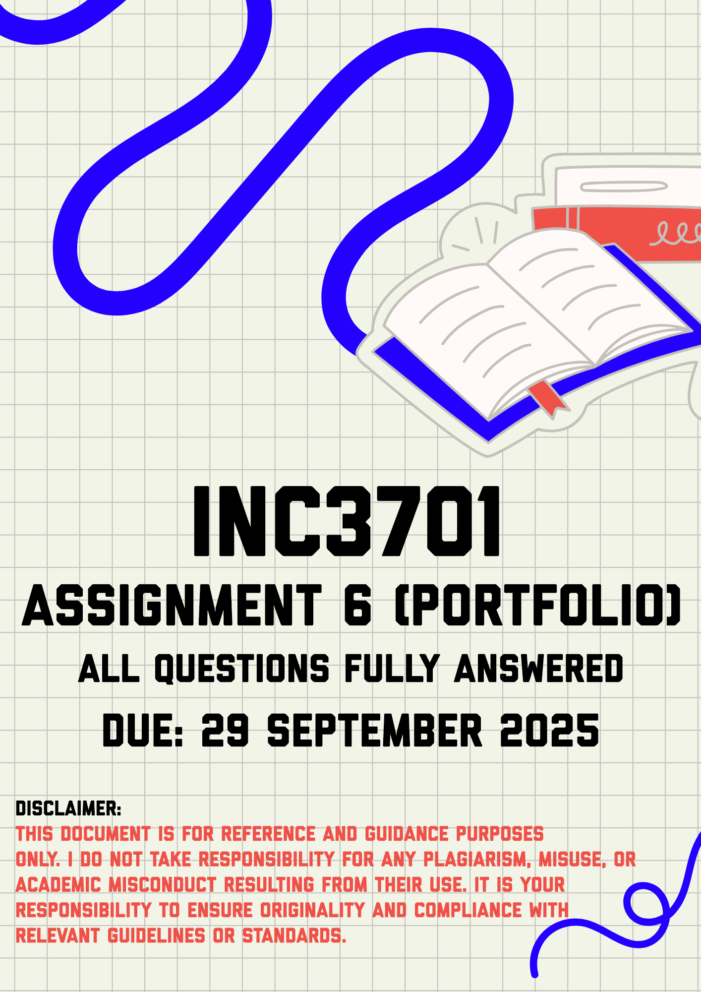 INC3701 Assignment 6 (Portfolio) Memo | Due 29 September 2025. All questions fully answered. Task 1