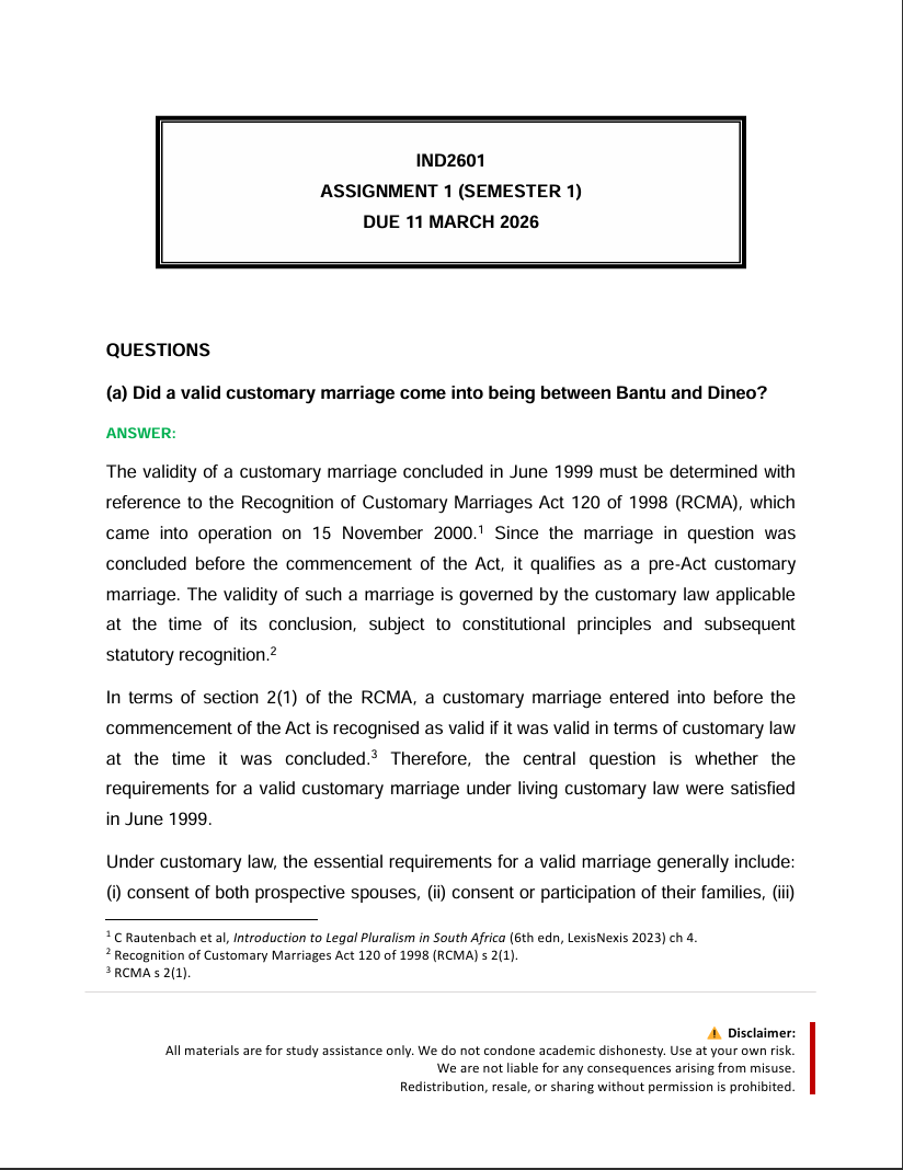 IND2601 Assignment 1 Semester 1 2026 (Fully Answered) – Due 11 March 2026 (VTSA)