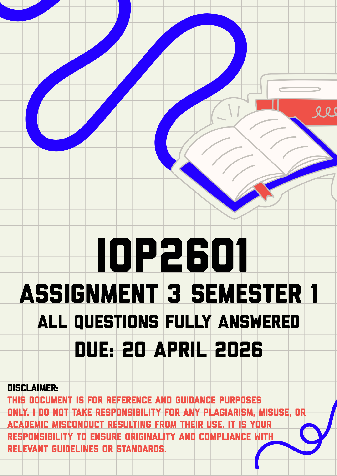 IOP2601 Assignment 3 Semester 1 Memo | Due 20 April 2026. All questions fully answered. QUESTION 1 [12]