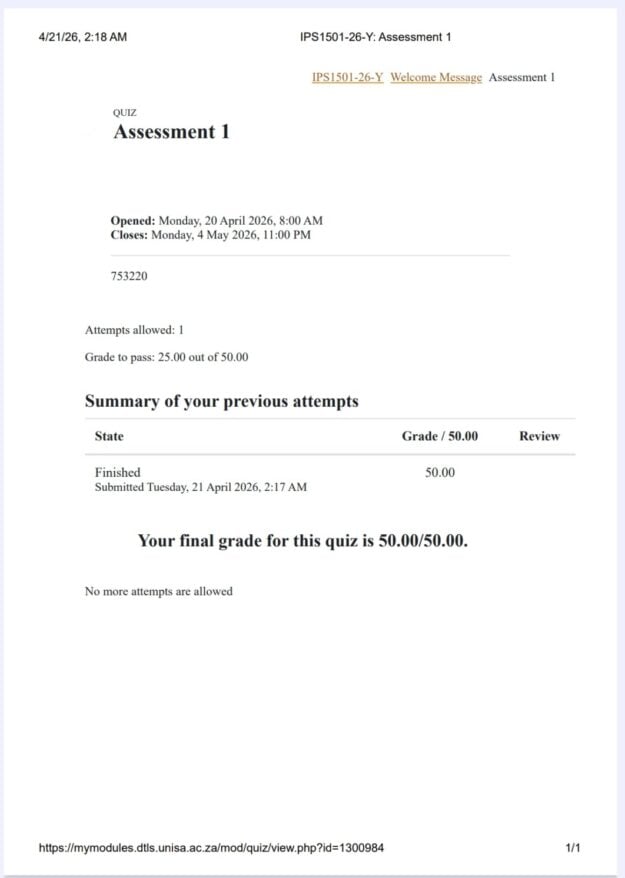 IPS1501 Assignment 1 2026 | Due 4 May 2026 – Distinction Guaranteed