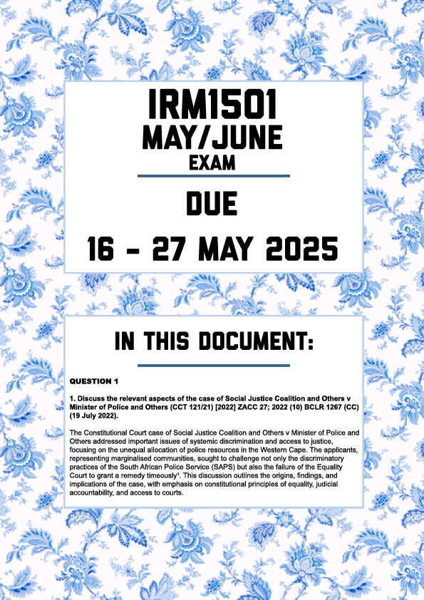 IRM1501 May/June Exam Memo | Due 16-27 May 2025. All questions fully answered.