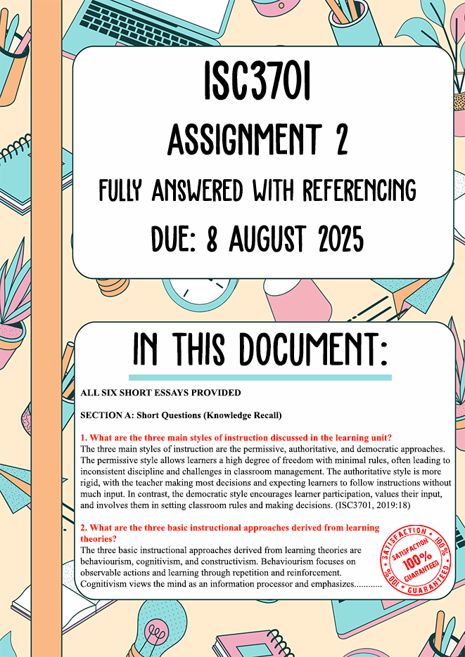 ISC3701 Assignment 2 Memo | Due 8 August 2025. This document contains a fully answered assignment with complete answers to all questions and tasks. Every section is carefully completed to ensure a guaranteed pass. Perfect for guaranteed pass, high marks, and peace of mind.