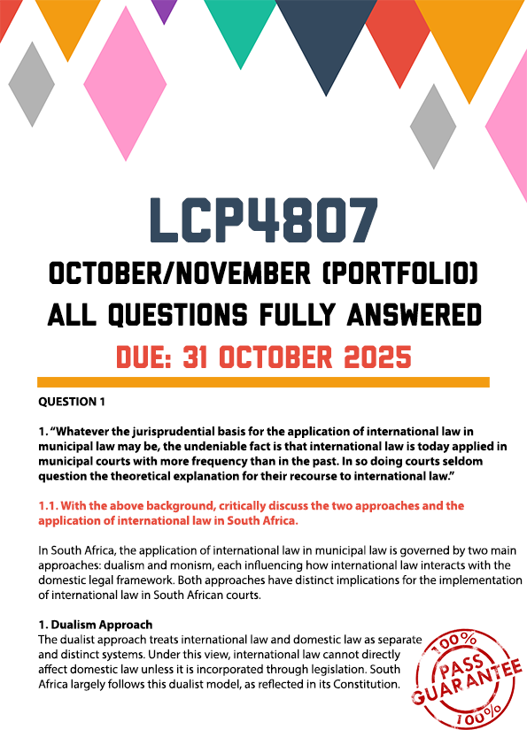 LCP4807 October/November (Portfolio) Memo | Due 31 October 2025. All questions fully answered. QUESTION 1