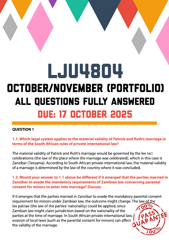 LJU4804 October/November (Portfolio) Memo | Due 10 – 17 October 2025. All questions fully answered. QUESTION 1