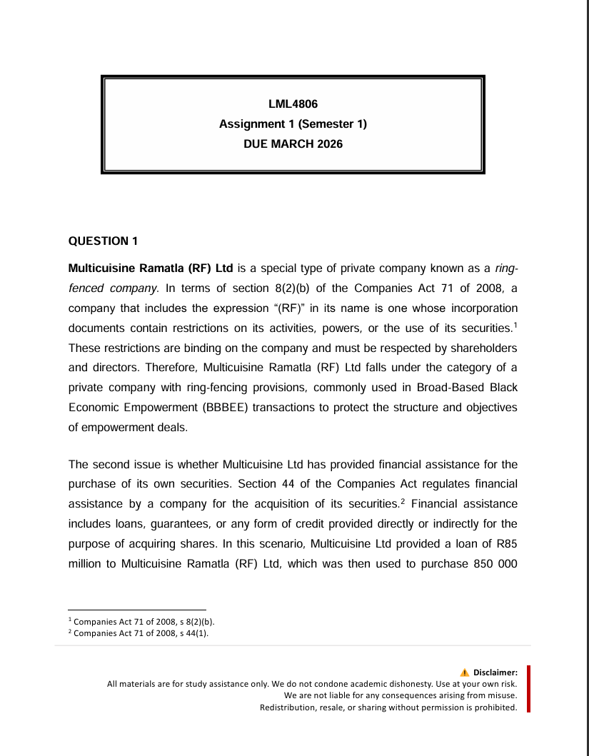 LML4806 Assignment 1 Semester 1 2026 (Fully Answered) – Due March 2026 (VTSA)