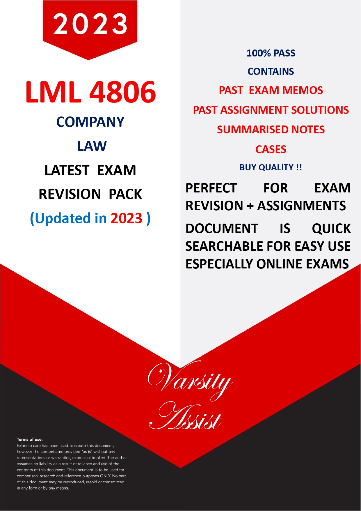 LML4806 -Company Law (Latest updated “2023” Exam Pack) Memos+ Assignment Solutions /Notes + cases⭐⭐⭐⭐⭐Buy Quality