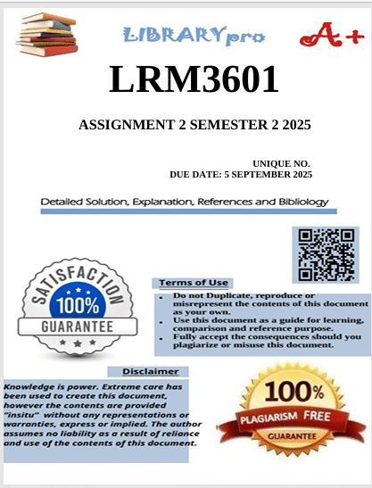 LRM3601 Assignment 2 (COMPLETE ANSWERS) Semester 2 2025 – Due 5 September 2025; 100 % TRUSTED workings, Expert Solved, Explanations and Solutions.