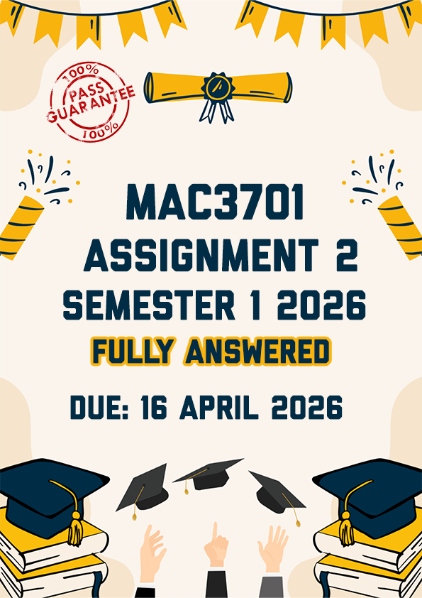 MAC3701 Assignment 2 Semester 1 Memo | Due 16 April 2026. All questions fully answered. Part A