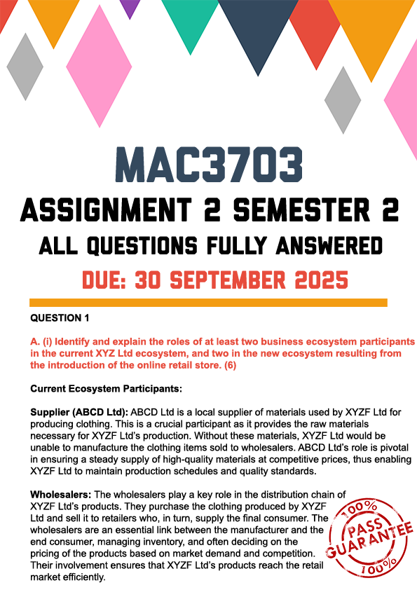 MNM3709 ASSIGNMENT 1 SEMESTER 1 2025 - FULLY ANSWERED