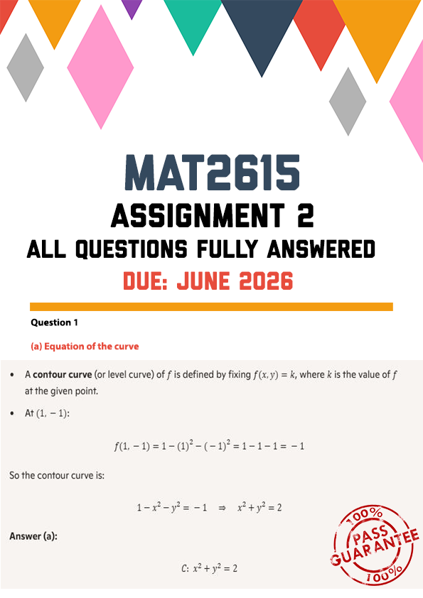 MAT2615 Assignment 2 Memo | Due June 2026. All questions fully answered. 1. (Sections 3.2, 7.5 and 7.9) Consider the R2 − R function f defined by