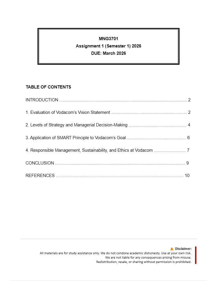 MNG3701 Assignment 1 Semester 1 2026 (Fully Answered) – Due March 2026 (VTSA)