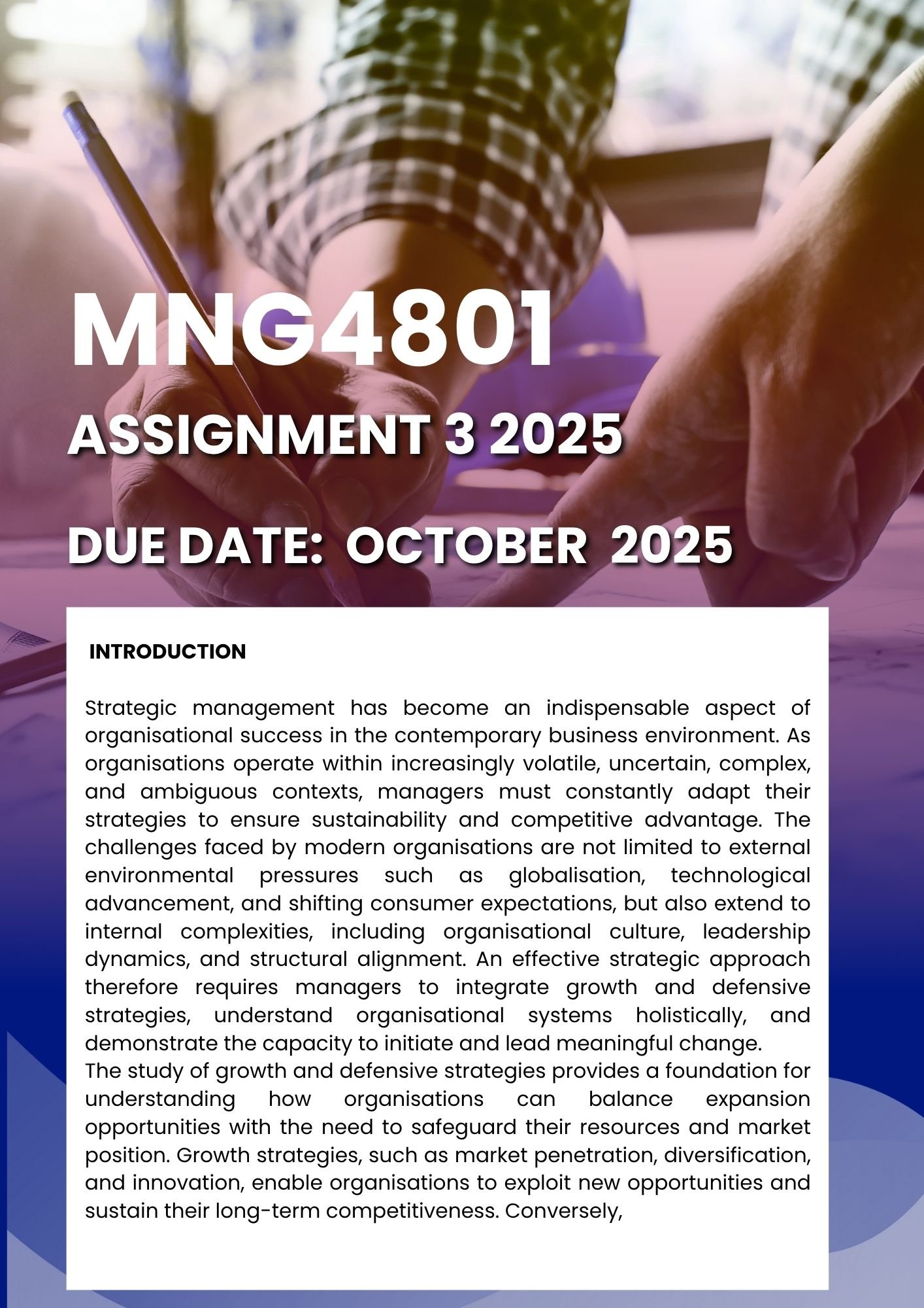 MNG4801 ASSIGNMENT 3 2025 MEMO |DUE DATE OCTOBER 2025|