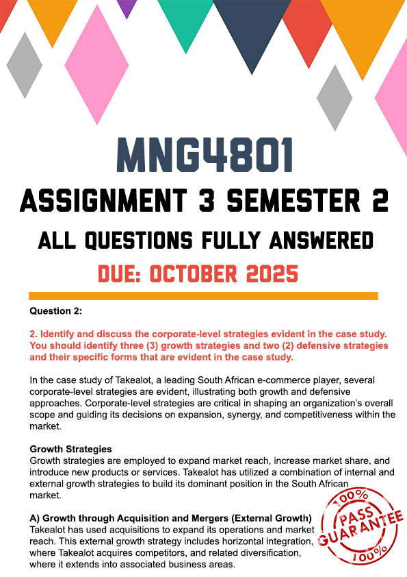 MNG4801 Assignment 3 Semester 2 Memo | Due October 2025. All questions fully answered. Question 2: